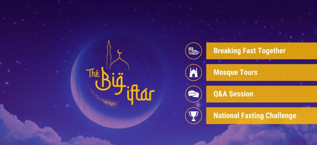 Join the Muslim community in solidarity in this year’s month of #Ramadan. The event is open to everyone, whether you’re religious or not. Our #TheBigIftar event will excite, enlighten and engage, so get ready for:
